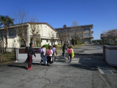 子どもたちは桜が満開の中、朝から元気よく登校してきました。