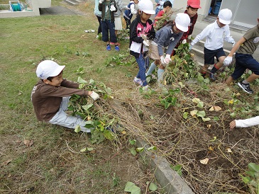 10月16日火曜日2時間目に、生活科で育てていたサツマイモを掘りました。