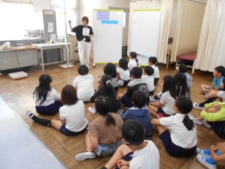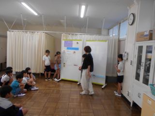 擦り傷や鼻血などの処置について、グループで考え、発表しました。