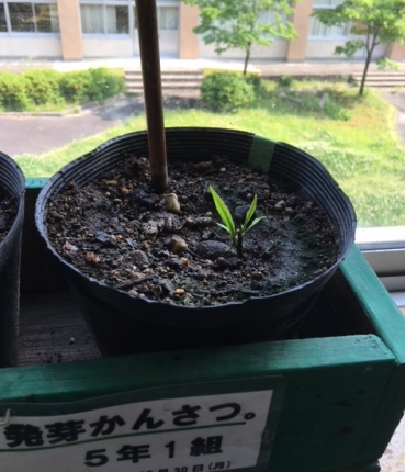 昨年度、しろやま倶楽部の方にいただいたどんぐりが芽を出しました。