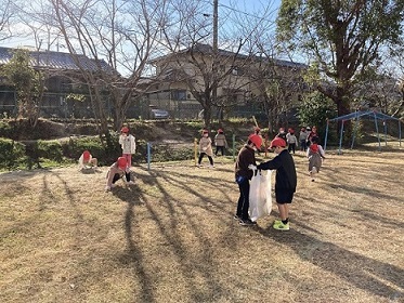 今週は外掃除週間です。1年生は南運動場の落ち葉拾いをしました。事前に草を刈ってもらってあったので、枯れた草をたくさん集めることができました。全部で11袋。おかげできれいになりました。きれいになった運動場で、たくさん遊んでくださいね。