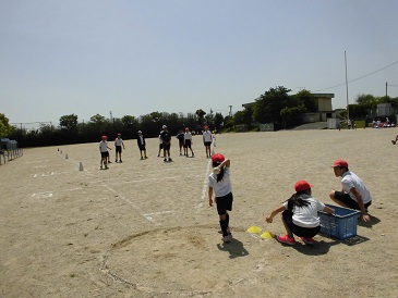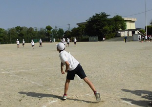15日は、運動場で行う「50m走」「ソフトボール投げ」の測定を行いました。