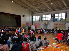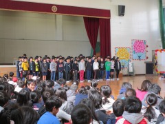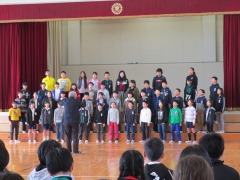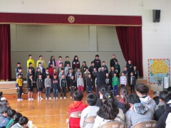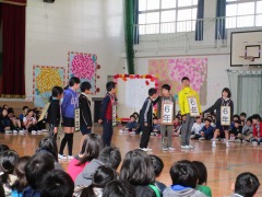 そして在校生の出し物の最後は5年生が締めくくってくれました。「6年生への尊敬と挑戦」と題して、6年生を主題にした劇や長なわ対決・合唱と心温まる出し物を考えてくれました。リハーサルではちょっと恥ずかしそうにしていた子どもたちでしたが、本番は力を出し切って盛り上げてくれました。