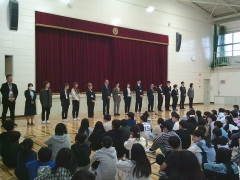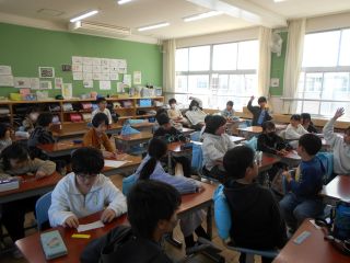 修了式では、50周年で埋めるタイムカプセルの紹介をした後、各クラスの代表が「にっこり」楽しんだこと、「しっかり」がんばったことを発表しました。
