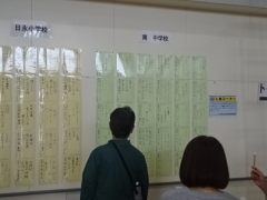 11月5日(日)秋晴れの中、泊山小学校にて「日永ふれあい文化祭」が開催され、開会とともに多くの方が集まって来ました。舞台発表が行われた体育館には、南中生徒作品「人権標語、人権ポスター」の掲示もありました。