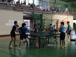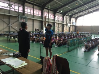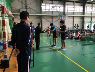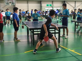 今日と明日の二日間,中体連新人大会が行われます。卓球男子の開会式では優勝盾の返還と選手宣誓を行いました。