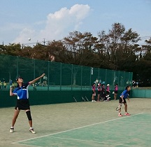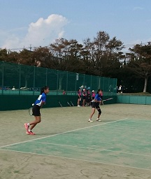 ソフトテニス団体戦で男子は1回戦で港中に惜敗しました。女子は川越中に勝利しました。