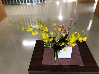 今回は,オンシジウム,スプレーカーネーション,リューカデンドロン,ドラセナを使った作品です。