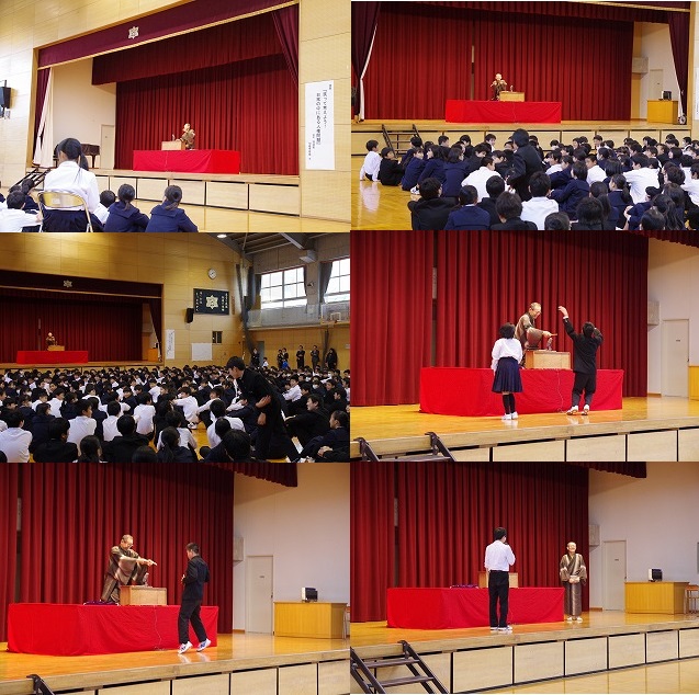 今日は落語家の切磋亭琢磨さんをお迎えして,人権講演会を行いました。生徒たちに気さくに声をかけて,