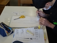 教材の消しゴムが思っていた以上に硬いみたいで、彫るのにかなり力がいるようでした。美術科で最後の作品です。素敵なハンコが出来上がるといいですね。