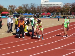 女子の部は、全長10.75km、5区間でタスキリレーが行われました。爽やかな秋晴れですが、気温がやや高めで暑い中でのレースとなりました。