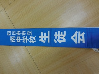 この青い襷をかけて活動していますので、生徒の皆さんは見かけたら応援よろしくお願いします!