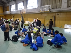 本日、南中学校体育館を会場にして、日永地区防災訓練が行われました。