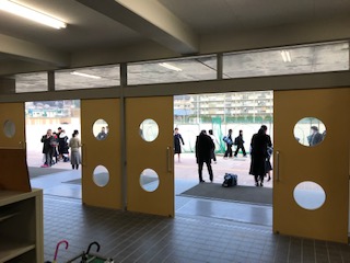 昇降口では担任の先生が出迎えて,さらに生徒の皆さんの笑顔がほころんでいました。