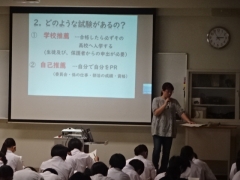学校では、進路説明会の前に、3年生では学年集会を行い入試全般に関する説明を行いました。