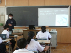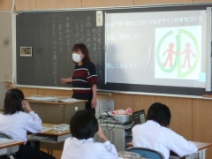 1年生では、福祉体験学習の最初の授業として「UD:ユニバーサルデザイン」について学びました。