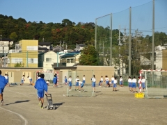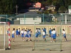 暖かい日差しを浴びながら、朝練を行っているグラウンドの様子です。