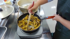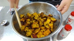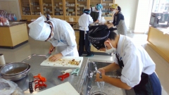 8,9,10組では家庭科の時間に、みんなで育て、収穫したサツマイモを使って調理実習を行いました。
