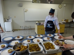 本日のメニューは、大学イモ、キャラメルイモケンピ、スイートポテト、サツマイモのパウンドケーキ、ホットケーキミックスを使った蒸しパン等々、盛りだくさんです。もちろん、これらのメニューもみんなで、調べ、相談しながら決定しました。