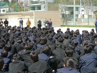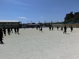 1年生は点呼に戸惑い、目標の5分を少しだけ超えてしまいましたが、避難は4分以内にできました。