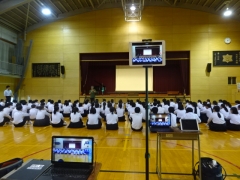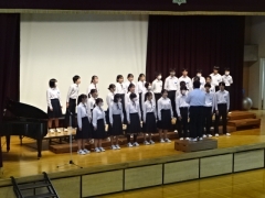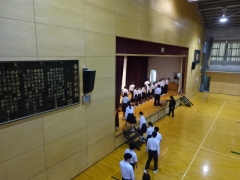 入退場の仕方、クラス紹介、指揮者・伴奏者の動き、合唱の姿勢、聴く姿勢などの確認を1つ1つ行いながらのリハーサルとなりました。本番に近い緊張感が漂う中、各学級が他の学級の合唱を聴きあいました。
