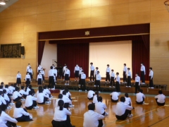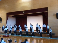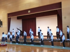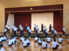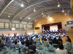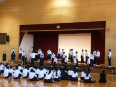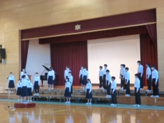 1年生らしい初々しい合唱で、順調に仕上がっているように感じました。更に、出だしの声をそろえたり、強弱、ハーモニーのところなどしっかり確認して本場を向かえてください。