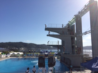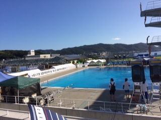 本日,岡山県の児島マリンプールで行われた全国中学校水泳競技大会飛び込みの部に本校生徒が出場しました。初日の予選で0.5点差で13位となり,惜しくも12位までが進む翌日の決勝に進出することができませんでした。また9日に行われた陸上競技の東海大会では3000m走に本校生徒が出場しました。