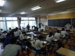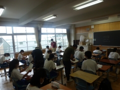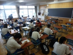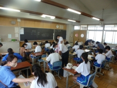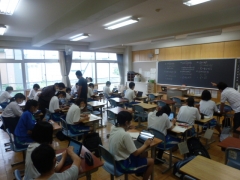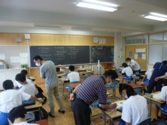 本日は、各学年の「夏の補充&質問日」です。各学年の先生方に加え、1年生の教室には「学びの一体化」の取り組みとして、河原田小、泊山小、日永小の各小学校の先生方にも参加していただいてます。