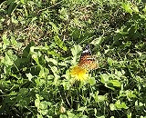 このチョウは「ツマグロヒョウモン」であることがわかりました。翅(はね)の模様は雌雄で異なり、この写真のチョウは雌と思われます。