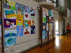 は、人権コーナーに「人権ポスター」と「人権標語」の作品展示、人権学習会TOMORROW(日永地区子ども人権文化育成協議会)の活動紹介を行いました。生徒作品の発表の場をいただき、ありがとうございました。