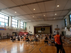 この催しは、日永小学校を会場として、グラウンドではミニグラウンドゴルフ、スポーツ鬼ごっこ、紙ひこうき飛ばし、スーパーボールすくい、体育館では美術展示、ステージ発表、ビンゴ大会、さらに、多目的ホールの展示コーナー、中庭では販売ブース等々、日永社協が地域を挙げて贈る文化の祭典です。コロナ禍の中、開催できなかった年もあり3年ぶりの開催です。
