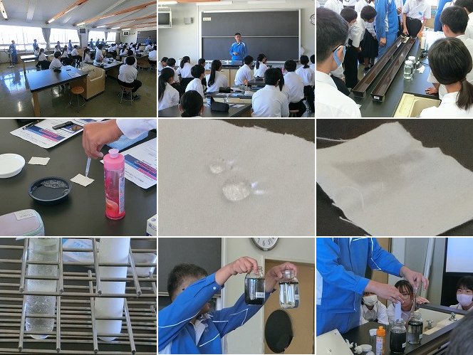 昨日(10月8日)と今日の2日間の2.3.4限と、2年生の理科では第一工業製薬株式会社さんが全クラスに出前授業をしてくださいました。