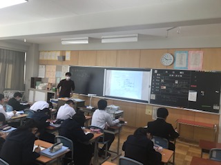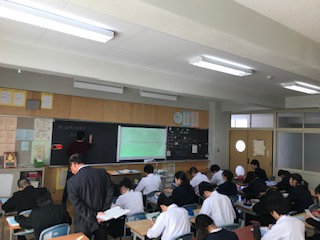 今日は教育委員会から倉田彰久教育adv.にお越しいただき,2年生数学科の授業研究を行いました。