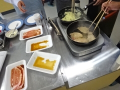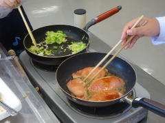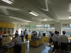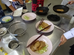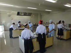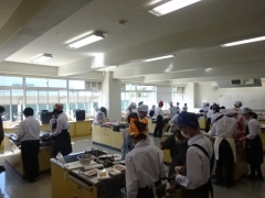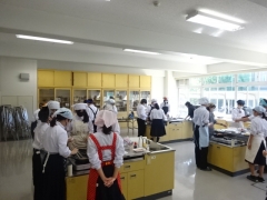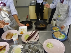 甘から~い香りが、調理室から校舎内いっぱいに広がります。生姜焼きに野菜が添えられ、とっても美味しそうでした。なかなか手際よく調理をしていたので、「普段、お家でもお手伝いをしてるの?」と声をかけたところ、「初めてフライパンを使いました。」と返事がありました。これを機会に、いっぱいお手伝いをしてくださいね。