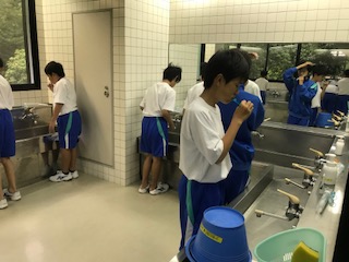 自然教室二日目はあいにくの雨となりましたが,みんな元気に活動を開始します。