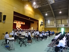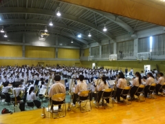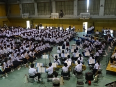 続いて「交響的断章」です。この楽曲は、今年度一番時間をかけて練習した曲であり、三重県吹奏楽コンクールA編成の部で見事「金賞」を受賞した曲です。さらに、南中ヒットパレード、ヒゲダンスペシャルメドレーと続きます。