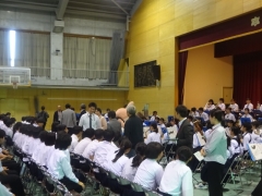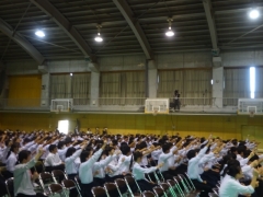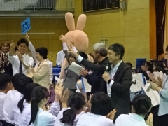 1年生のダンスあり、着ぐるみのパフォーマンスあり、3年生の先生方からの熱いメッセージありと盛りだくさんの内容でした。会場が1つになって盛り上がりました。