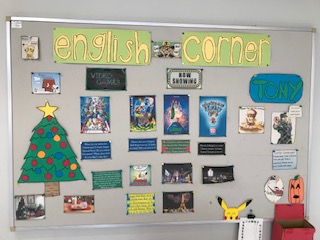 12月に入ってトニー先生のEnglish cornerがクリスマスバージョンになりました。