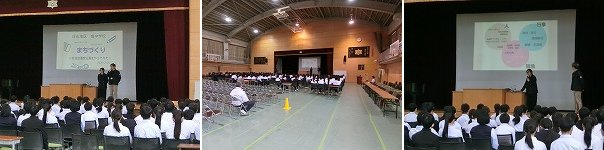昨日(3月2日)の6限目に、日永連合自治会からお越しいただき、3年生に対して自治会についてお話いただきました