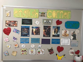 YEFのトニー先生が作ってくれているEnglish cornerです。最近のゲームや映画の情報,