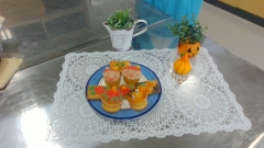 韓国では、ソルギ(お餅のケーキ)の上に餡子のお花を飾ります。本日は、プチケーキやクッキーの上に飾り付けをおこないました。
