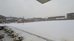 積雪のため、自転車通学や遠方からの登校のことも考慮し、始業時間を1時間遅らせます。