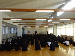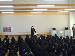 本日、学年集会を実施しました。学年議会からの報告に続き、先生方から生活面や学習面についてのお話しをしていただきました。
