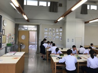 今日は美術科の教育実習生が2年生に篆刻の授業を行いました。生徒たちは自分の名前からデザインを