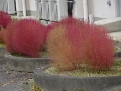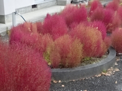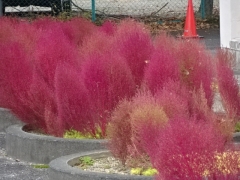 中体連の応援で各会場を巡る中、真っ赤に染まるコキア(ホウキギ)に出会いました。