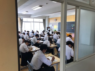 今日から期末テストが始まりました。みんな真剣にテスト問題に取り組んでいます。