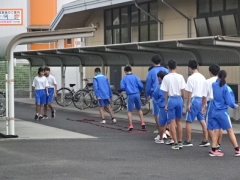 明け方の雨のおかげもあり、空気がとっても澄んでいて気持ちの良い朝です。雨上がりのため、今朝はグラウンドが使えませんが、ランニングを中心に工夫をしながら朝練習を行っていました。