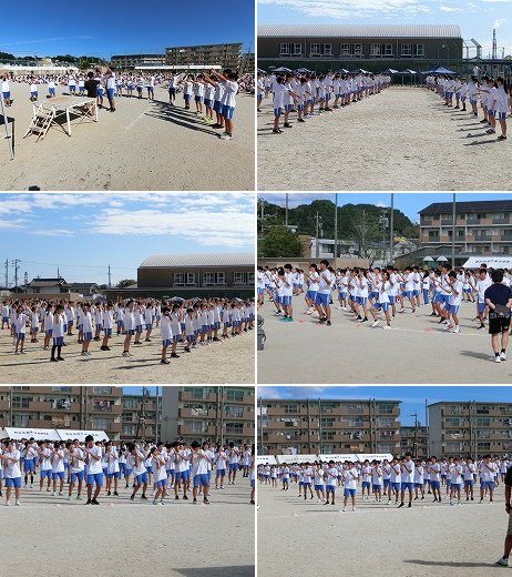 さわやかな秋晴れの中、1~3限にかけて、初めての体育祭に向けての全体練習が行われました。