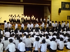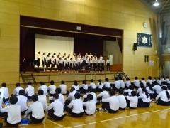 さすが3年生の合唱です。本番と見間違うほどの緊張感が漂う中、各学級の合唱が披露されました。まさに5学級が横一線という感じです。さて、どの学級が抜け出すのか、当日までの練習にかかっているようです。さらに、本番が楽しみになりました。