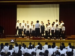 前回のリハーサルに比べて、声の出し方が良くなったように感じました。音楽科の先生からのアドバイスにあったように、今一度タブレットPCなどを使って音程の確認をしましょう。それと指揮者をしっかりと見て、息継ぎのタイミングや強弱の工夫など、残り時間はあとわずかですが、最後の最後まであきらめず合唱曲を完成させましょう!